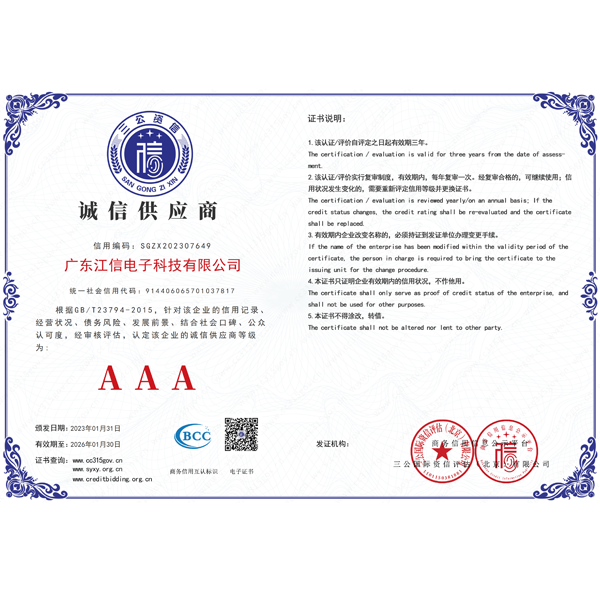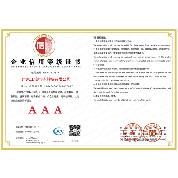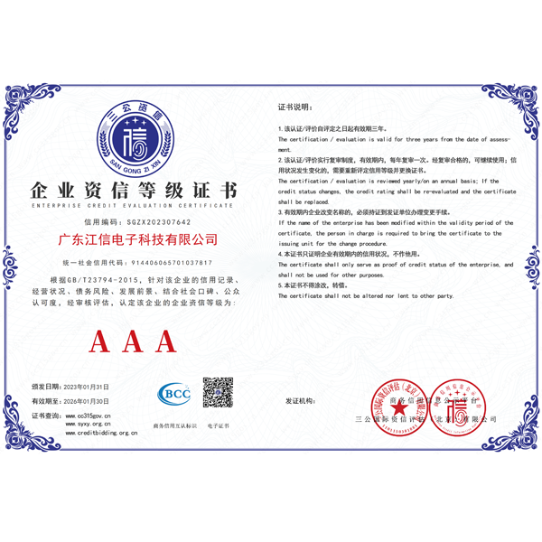 秉承“科技創(chuàng)新,軍工品質(zhì)”的宗旨,鄭重承諾整機(jī)十年壽命保證,一年免費保養(yǎng),終身維護(hù)。相信有您的關(guān)心與支持,有我們孜孜不倦的努力,江信電子將與您一起邁入輝煌的未來。
